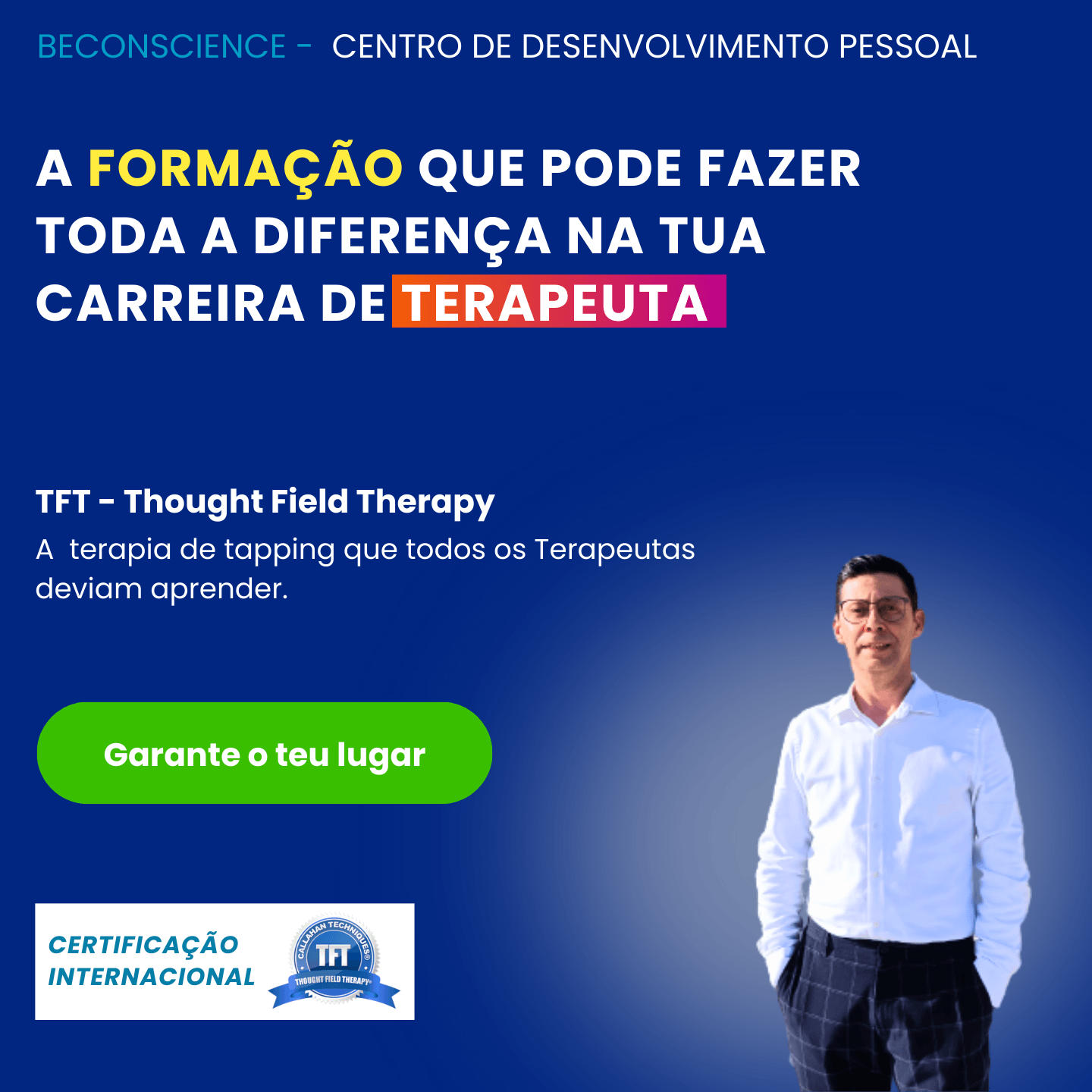 Torna-te um Terapeuta Profissional da técnica de Libertação Emocional mais poderosa que existe! Ajuda os teus clientes em qualquer problema físico, emocional ou mental, de forma simples, rápida e eficaz, e com absoluta confiança no resultado.